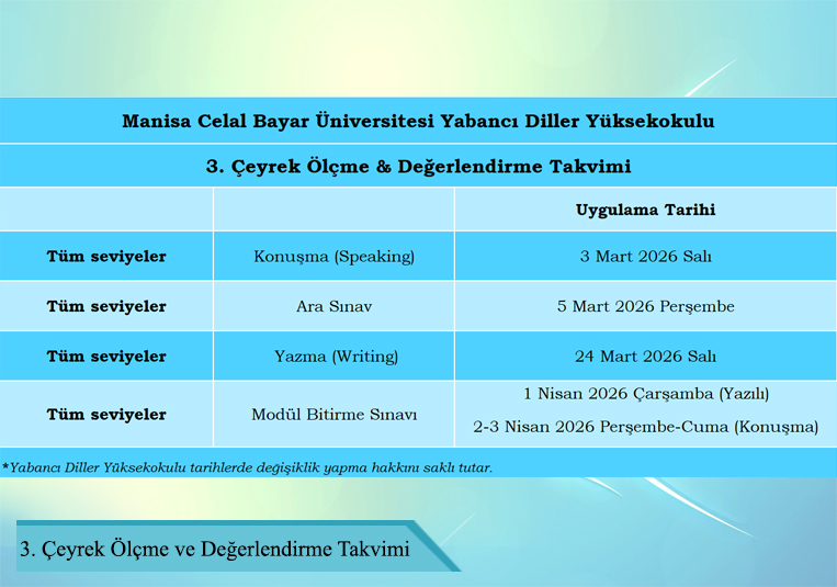3. Çeyrek Modül Bitirme Sınavı Duyurusu
